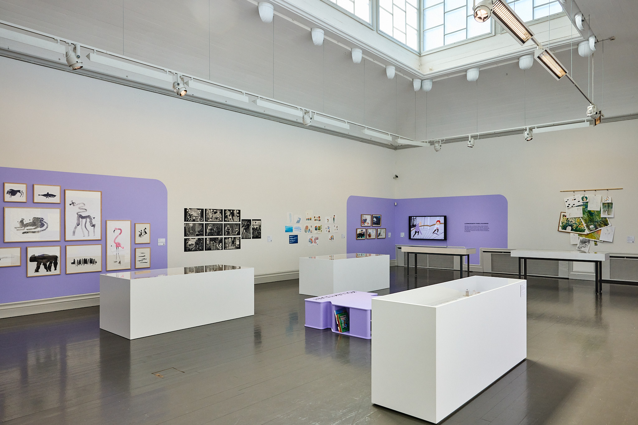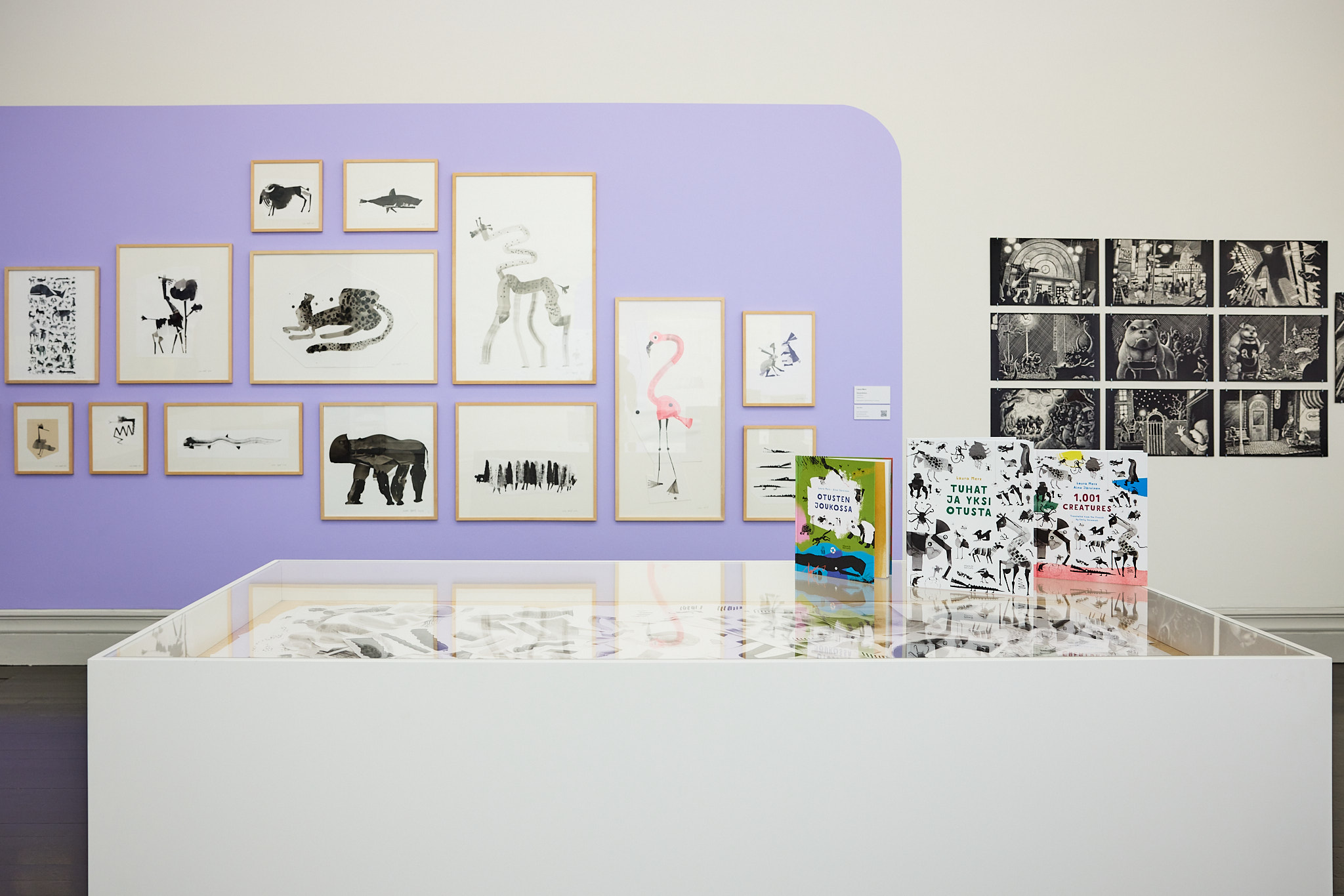The artists’ works are most often found in books, as the artistic entities that picture books and graphic novels are. The exhibition invites you to experience them, shows the working processes, and presents the works playfully while respecting the art.